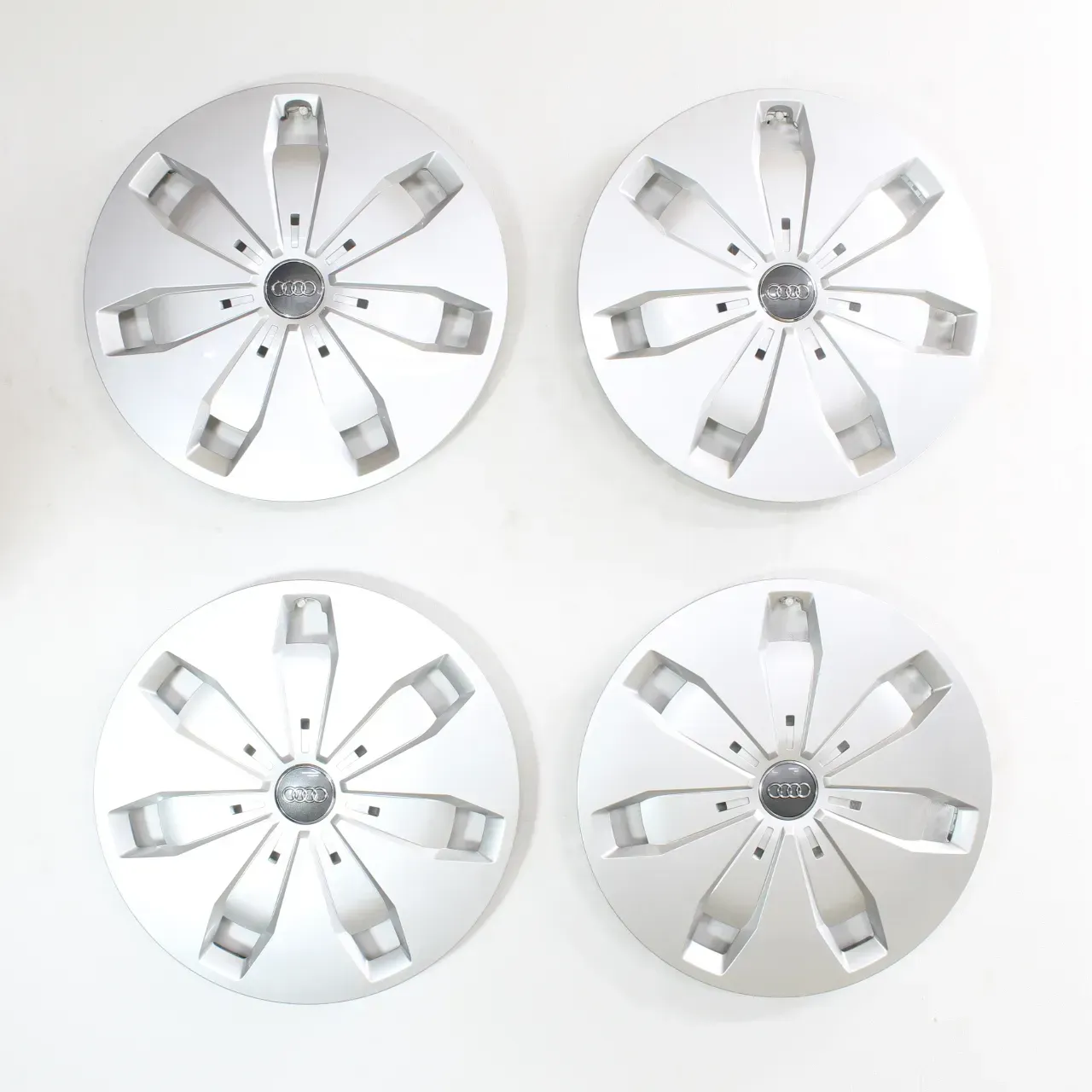 Der angebotene original Audi Radkappensatz ist gebraucht. Dies bedeutet, dass der Radkappensatz bereits im Straßenverkehr eingesetzt wurde. Bremsstaub, Korrosion als auch kleine Gebrauchsspuren (leichte Kratzer) sind daher nicht auszuschließen. Alle Halteklammern wurden geprüft, und sind intakt.