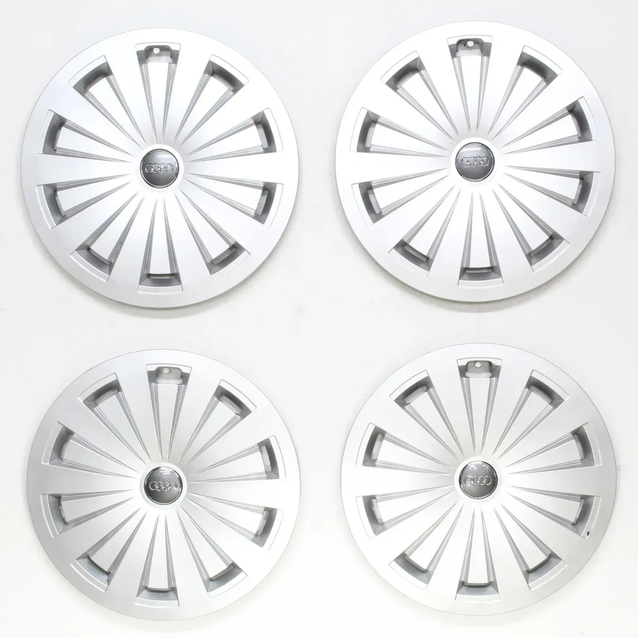 Der angebotene original Audi Radkappensatz ist gebraucht. Dies bedeutet, dass der Radkappensatz bereits im Straßenverkehr eingesetzt wurde. Bremsstaub, Korrosion als auch kleine Gebrauchsspuren (leichte Kratzer) sind daher nicht auszuschließen. Alle Halteklammern wurden geprüft, und sind intakt.