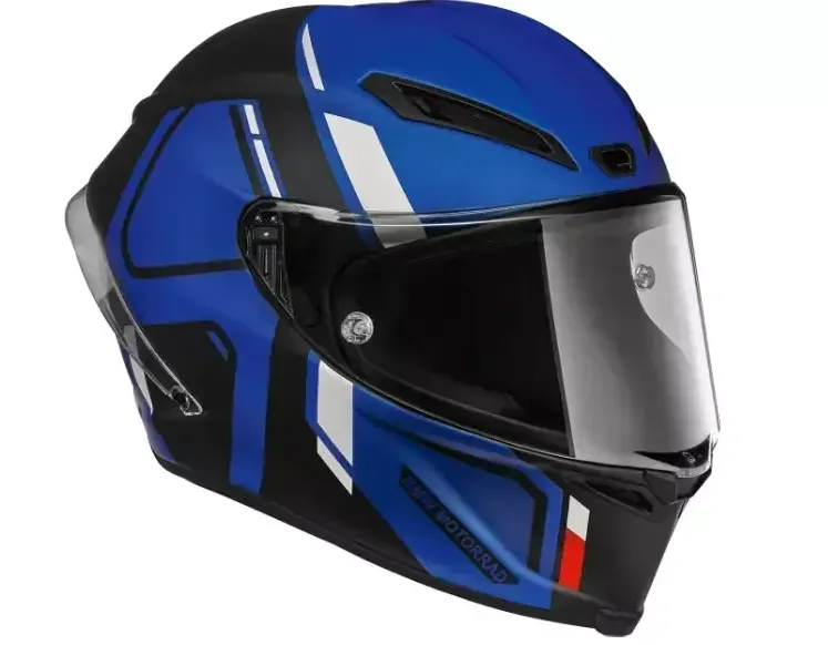 Der BMW Motorradhelm M Pro Race ist ein Unisex BMW Integralhelm für den Einsatz auf der Rennstrecke oder im Sport. Die Außenschale besteht aus Carbon, Aramid und Fiberglas, um ein geringes Gewicht und eine sehr hohe Widerstandsfähigkeit im Falle eines Sturzes zu gewährleisten. Die Innenpolster sind weich für hohen Komfort, das Kopfpolster besteht aus zwei verschiedenen Stoffen. Um Ihnen bei jeder Temperatur Komfort zu bieten, hat das Kopfpolster eine warme Seite mit weichem Shalimar-Gewebe und eine kalte Seite mit Ritmo-Gewebe, die Ihnen eine perfekte Passform ermöglicht. Das Visier der Kategorie 1 mit PinLock Maximum Vision bietet Ihnen auch in sportlicher Fahrposition ein sehr weites Sichtfeld. Durch eine Antibeschlagbehandlung wird Ihre Sicht in keiner Weise beeinträchtigt. Neben einer sehr widerstandsfähigen Schale ist der Helm so konzipiert, dass er Kollisionen oder Stürzen mit sehr hoher Geschwindigkeit standhält. Die Form der Schale soll Sie schützen: Der untere Rand minimiert das Verletzungsrisiko am Schlüsselbein.
